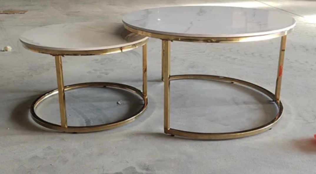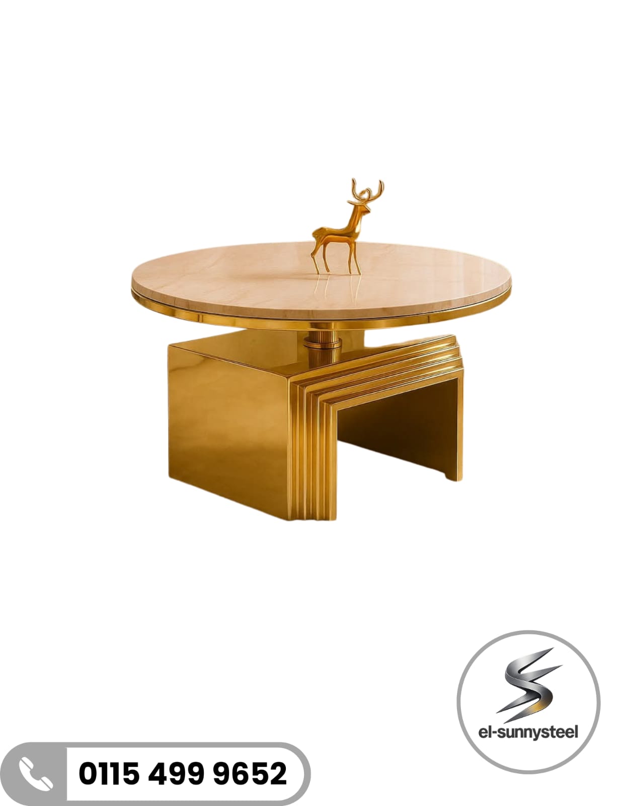 طاولة قهوة مودرن فاخرة بتصميم عصري أنيق. سطح الطاولة دائري بلمعة رخامية راقية، وقاعدتها المعدنية باللون الذهبي بتدي لمسة فخامة وتميّز لأي مساحة داخلية. تصميمها يجمع بين البساطة والرقي، وبتعتبر قطعة ديكور مميزة ترفع من مستوى أي صالة أو غرفة…